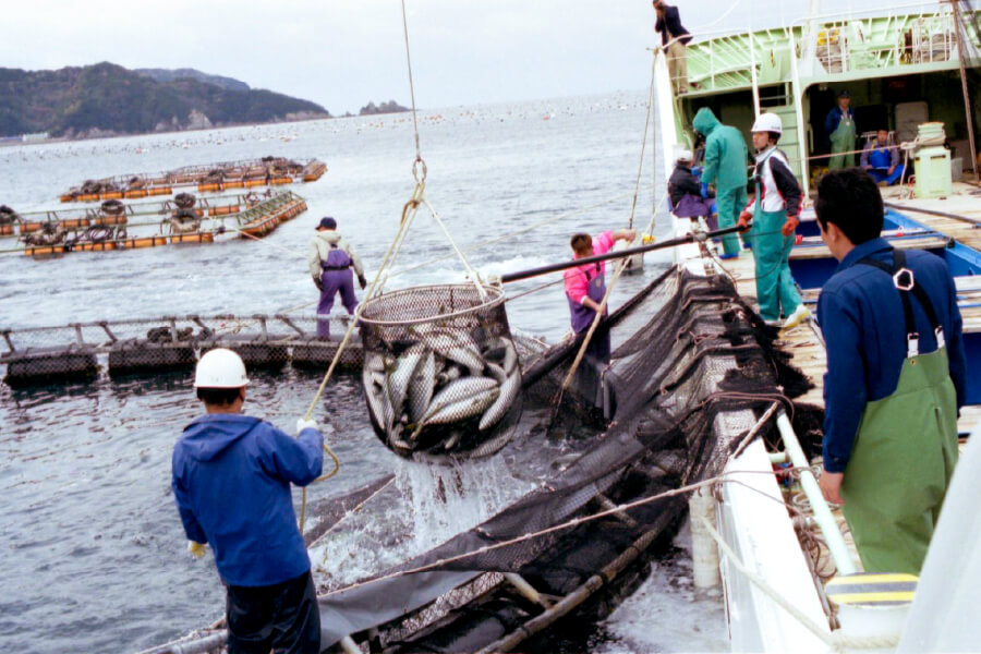 カロリーや栄養素を計算して作ったエサを与え、健康で身が締まり、適度に脂がのるよう育てます。漁場環境にも配慮し与える量も工夫しています。