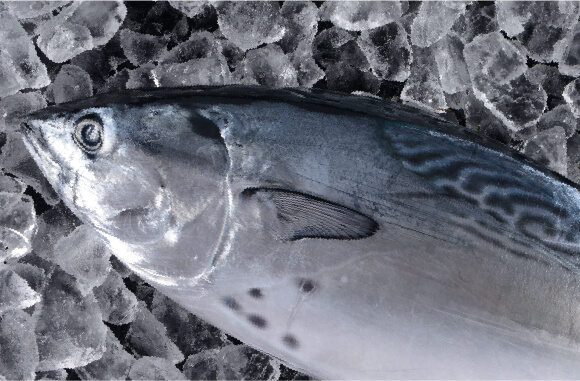 スマは、インド洋や太平洋の熱帯・亜熱帯域に広く分布する南方系の魚類です。体は紡錘形で、体側の後半部に鱗はなく高速遊泳に適しています。背側のトラ模様、胸鰭下にある数個の黒い小斑点が最大の特徴で、これが灸の跡のように見えることから、西日本ではヤイト、オボソ、スマガツオなどと呼ばれています。水揚げ量が極めて少なく、大都市の市場にはほとんど出荷されないため、主に水揚げ産地で消費され、「幻の高級魚」と言われる希少な魚です。