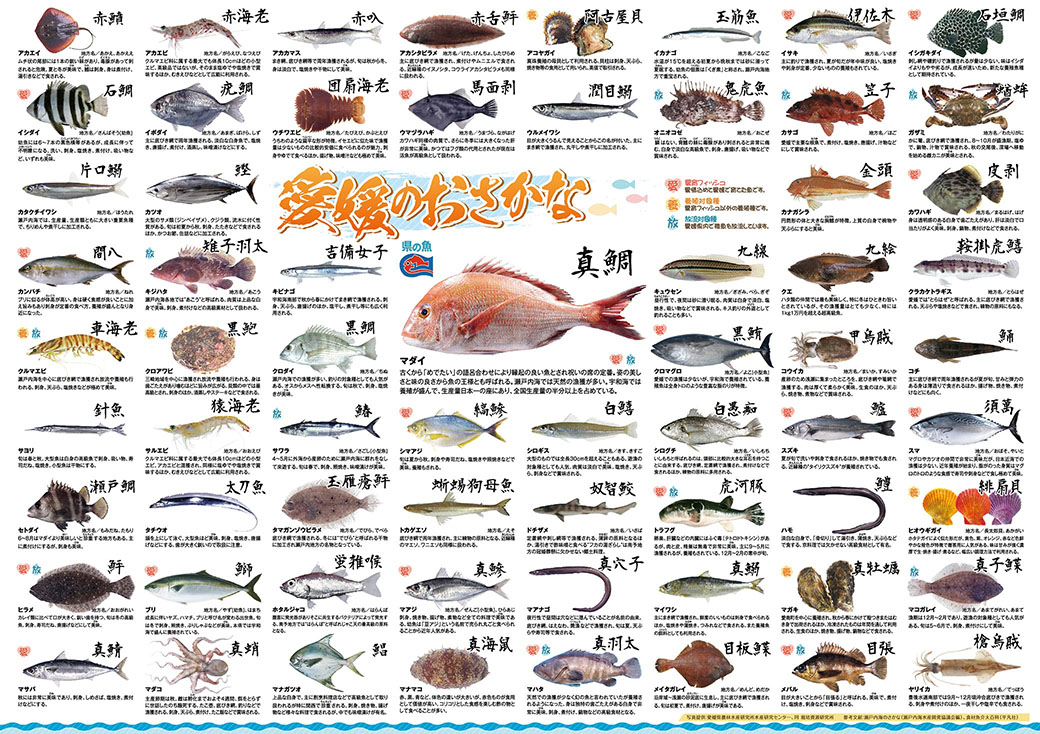愛媛県の「県の魚」。天然魚、養殖魚ともに全国屈指の生産量を誇っています。郷土料理も多く、地元でも親しまれ、祝い事に利用される、めでたい魚です。
