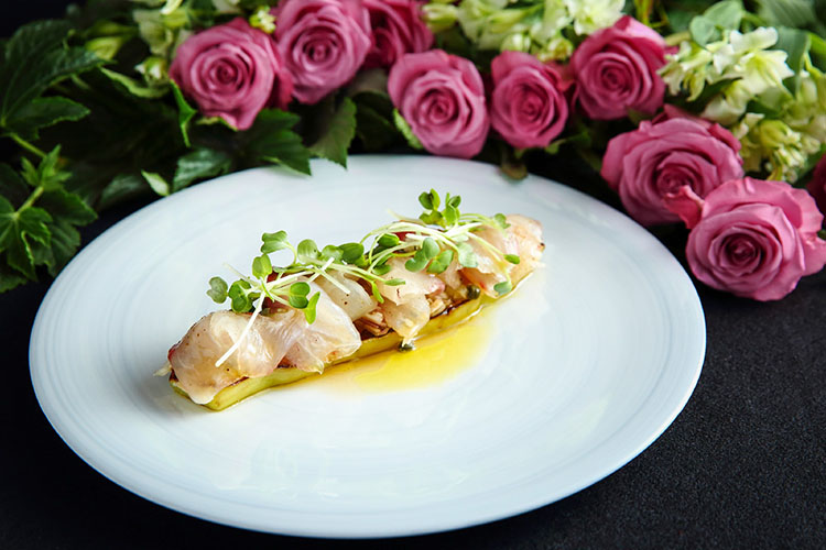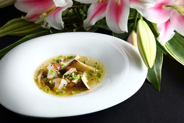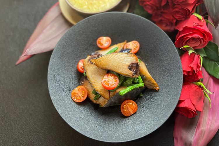 第1回のレッスンでは、ミシュラン2つ星フレンチレストラン「 Ryuzu(リューズ)」 オーナーシェフ 飯塚隆太氏をゲストに迎え、今が旬で脂がのった愛媛県産の美味しい「マダイ」を使った『マダイときのこのナージュ』、「シマアジ」を使った『シマアジの瞬間マリネ 秋茄子とともに』、の2品をレクチャー。