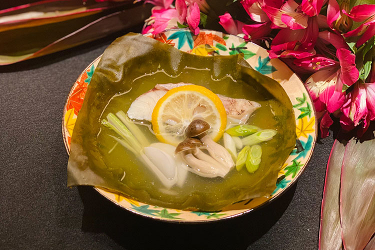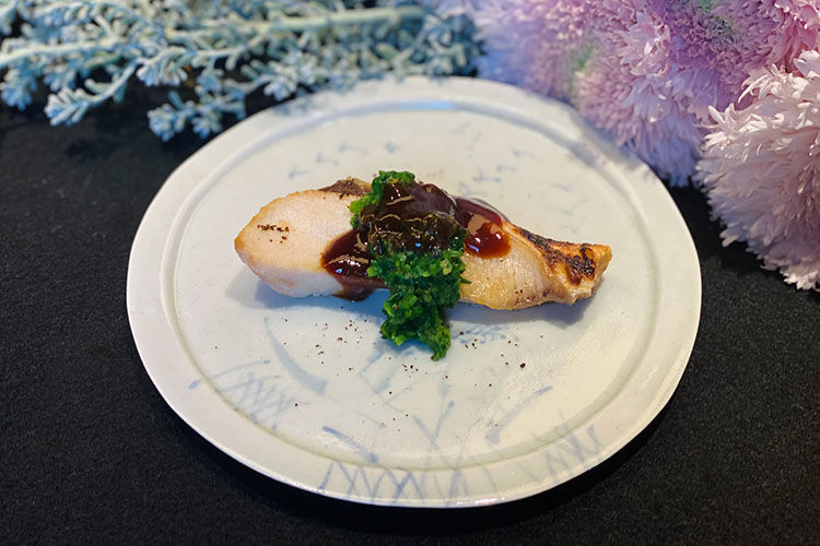 第2回のレッスンでは、ミシュラン一つ星の日本料理店「銀座 ふじやま 」のオーナーシェフ藤山 貴朗氏をゲストに迎え、旬を迎えた愛媛県産の美味しい「ブリ」を使った『ブリの梅醤焼き』、「マハタ」を使った『マハタの酒蒸し』を紹介。